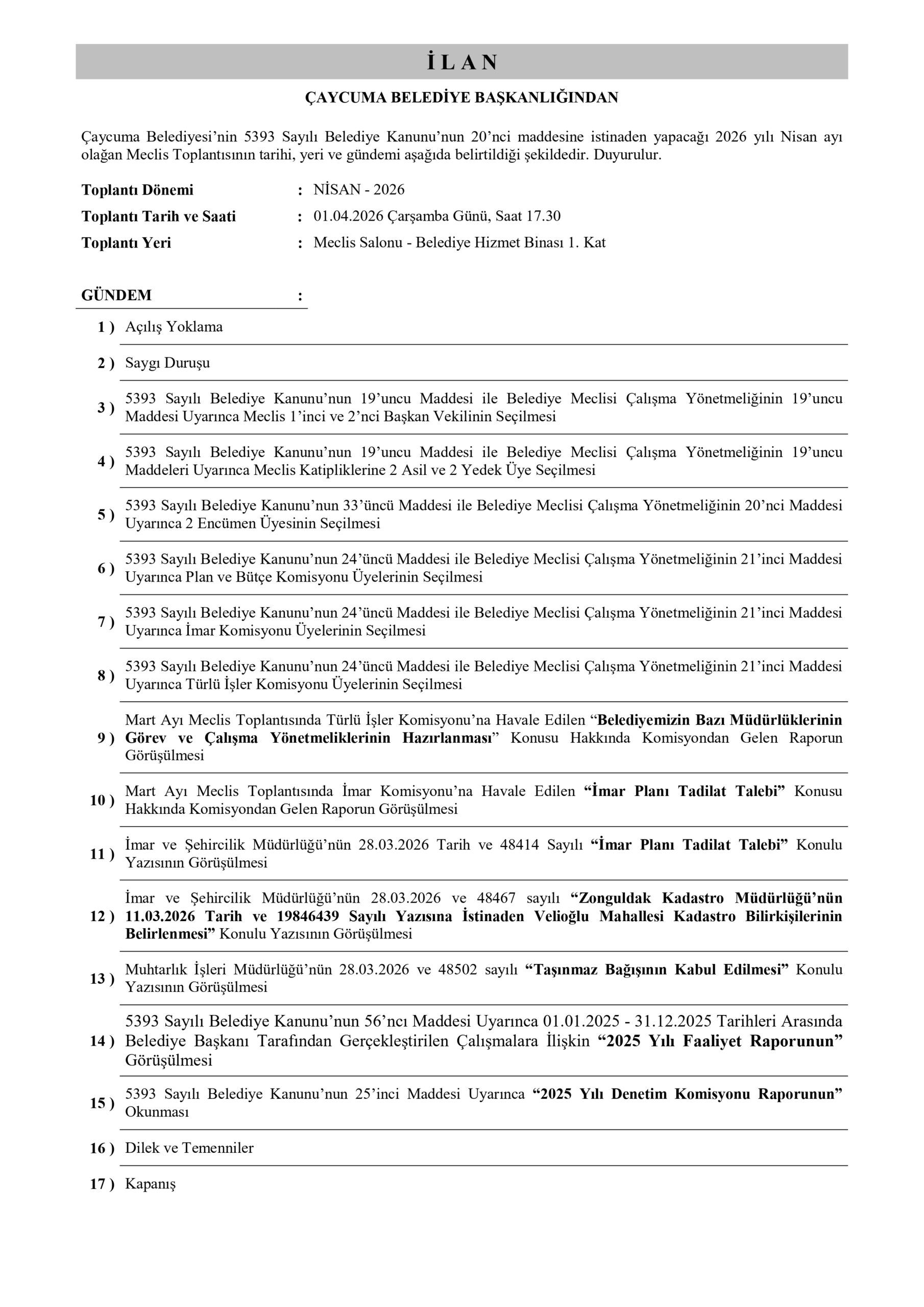 2026 NİSAN AYI MECLİS GÜNDEMİ
