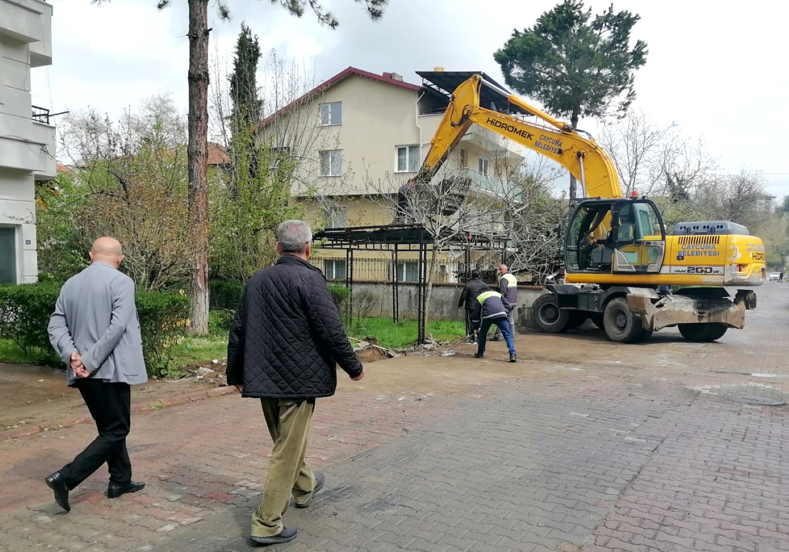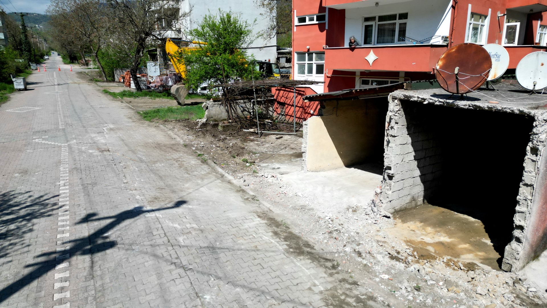 Çaycuma Belediyesi ekipleri, 18 uygulaması sonucunda, tapuya işlenen imar yolu içinde kalan duvar, çit gibi yapıları kaldırdı. Yerine yenisi yapılmak kaydıyla kaldırılan yapıların imalatına da başlanan çalışma sonunda yol genişliği 15 metreye çıkacak.