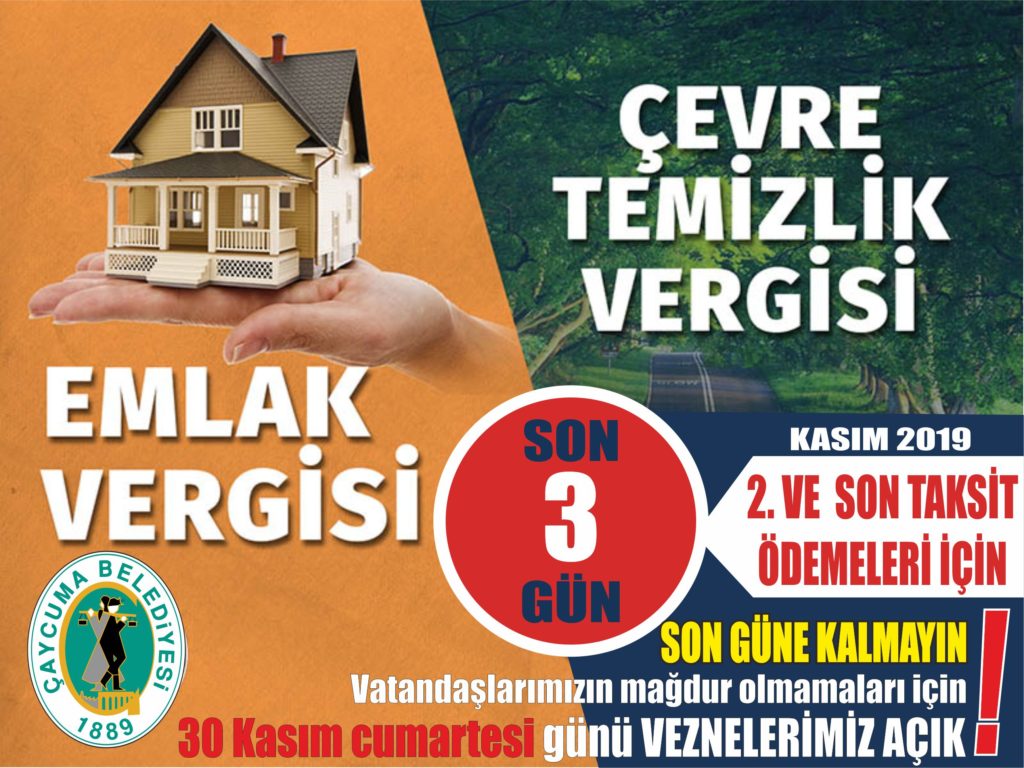 EMLAK ve ÇEVRE TEMİZLİK VERGİLERİNİN 2.VE SON TAKSİT ÖDEMELERİ İÇİN SON GÜNE KALMAYIN. Vatandaşlarımızın mağdur olmamaları için 30 K...