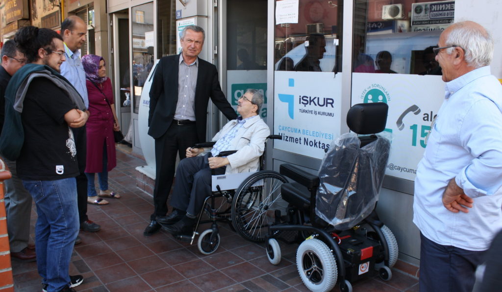 Çaycuma Belediye Başkanı Bülent Kantarcı, engelli bir vatandaşa daha akülü tekerlekli sandalyesi teslim edilirken yaptığı konuşmada, “T...