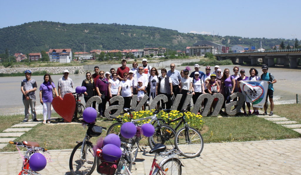 “El Ele Elden Ele 81 İlde” projesi kapsamında Muğla’dan yola çıkan Türk Bayrağını Zonguldaklı kadın bisikletçiler adına Bolulu kadınla...