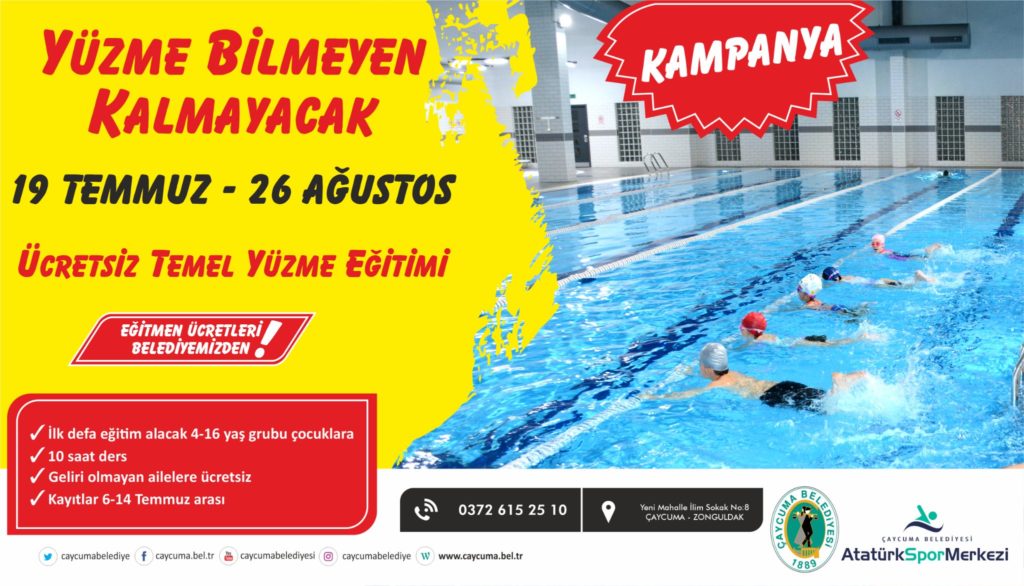 Çaycuma Belediyesinden çocuklarımıza müjde:   Çaycuma’da yüzme bilmeyen çocuk kalmayacak!   Atatürk Spor Merkezi yü...