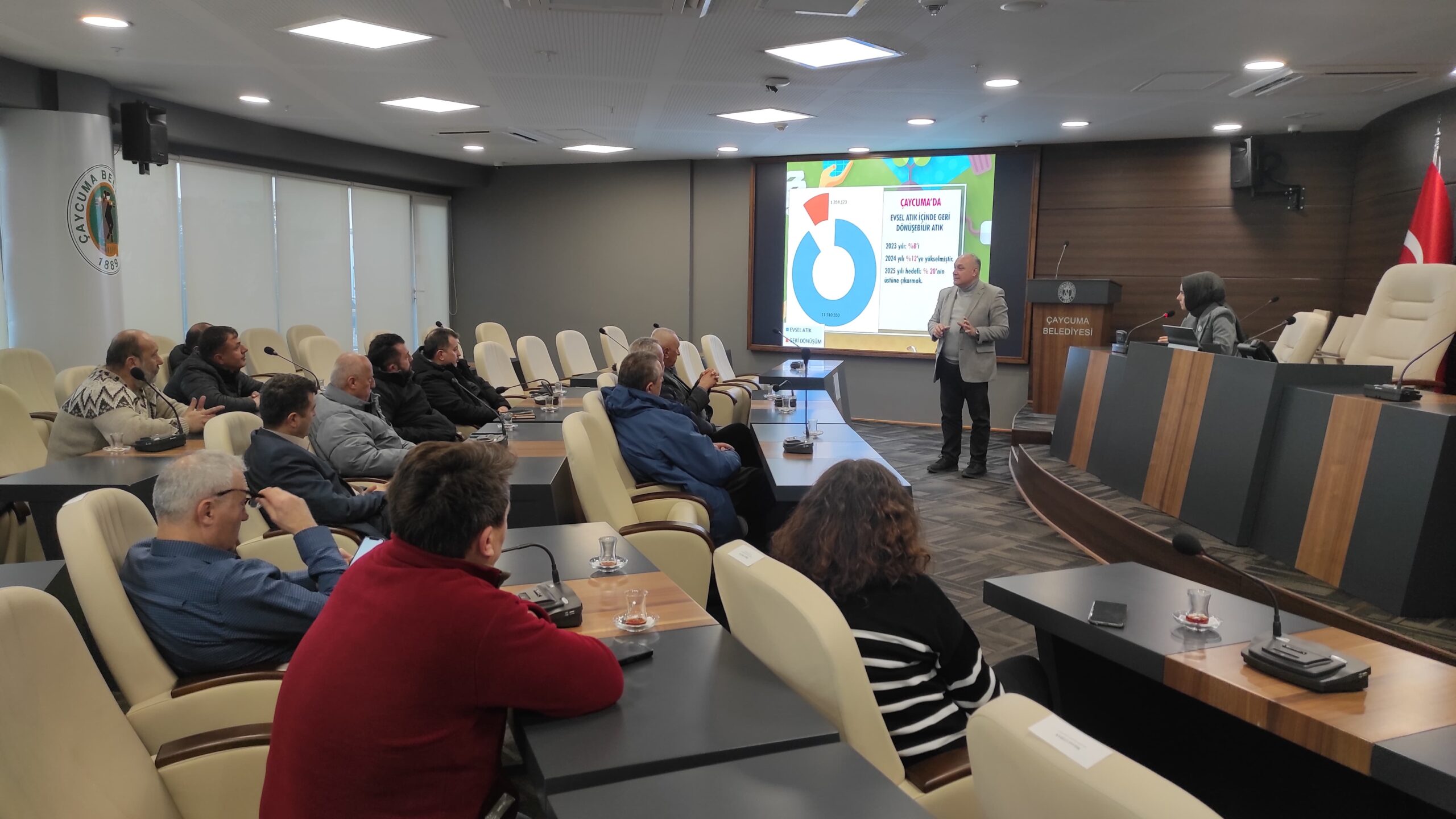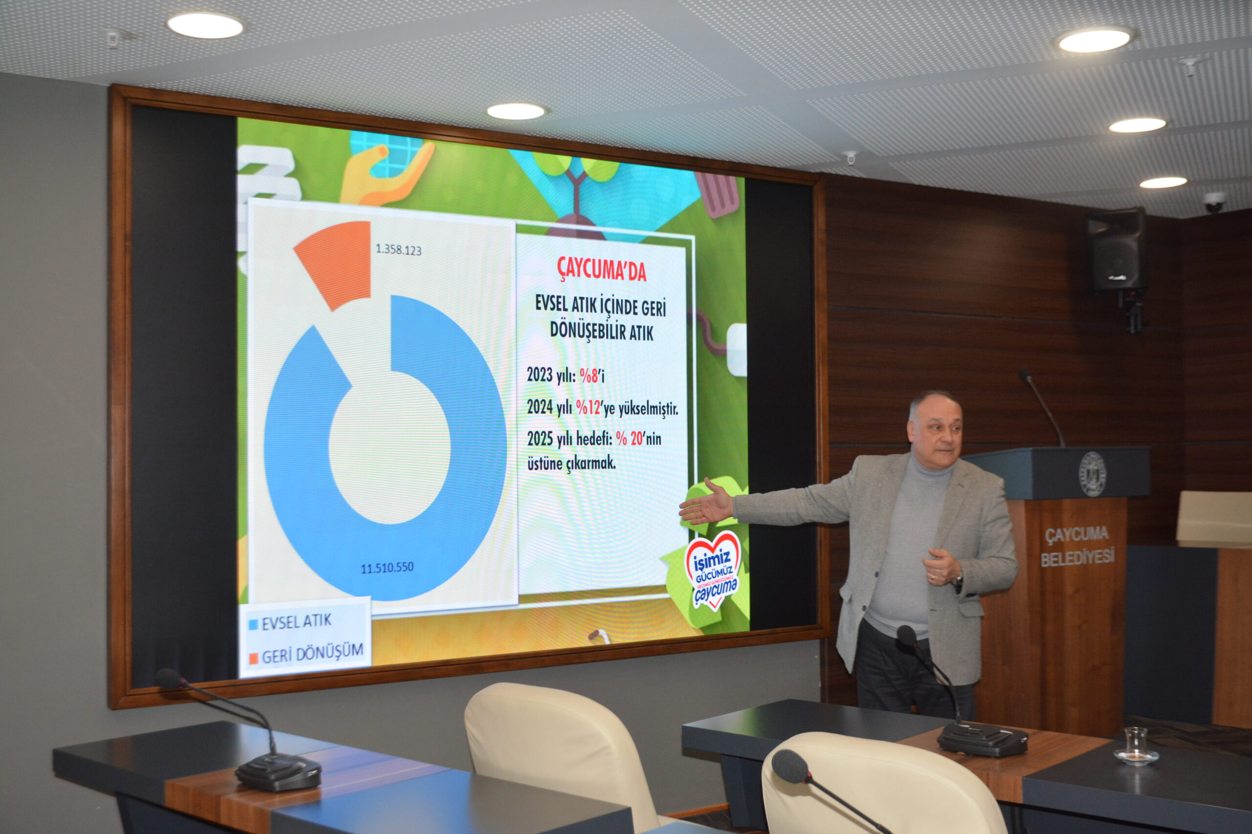 Çaycuma Belediyesi İklim Değişikliği ve Sıfır Atık Müdürü Cenk Kaplancan’ın bir açılış konuşması yaptığı toplantıda Çevre Mühendisi Esra Köktürk kampanya ile ilgili bir sunum yaptı. Dünyada, ülkede ve Çaycuma’da geri dönüşüm faaliyetleri konusunda rakamlarla bilgi veren Köktürk, kampanyanın nasıl işleyeceği konusunda ayrıntılı bilgi verdi.