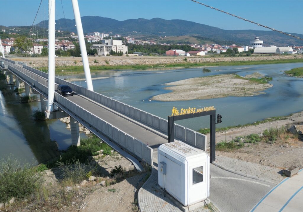 Günün belirli saatlerinde araç geçişine açılan Sarıkaş Yaya Köprüsü'nde araç geçiş sayısı 500'ü aşarken,...