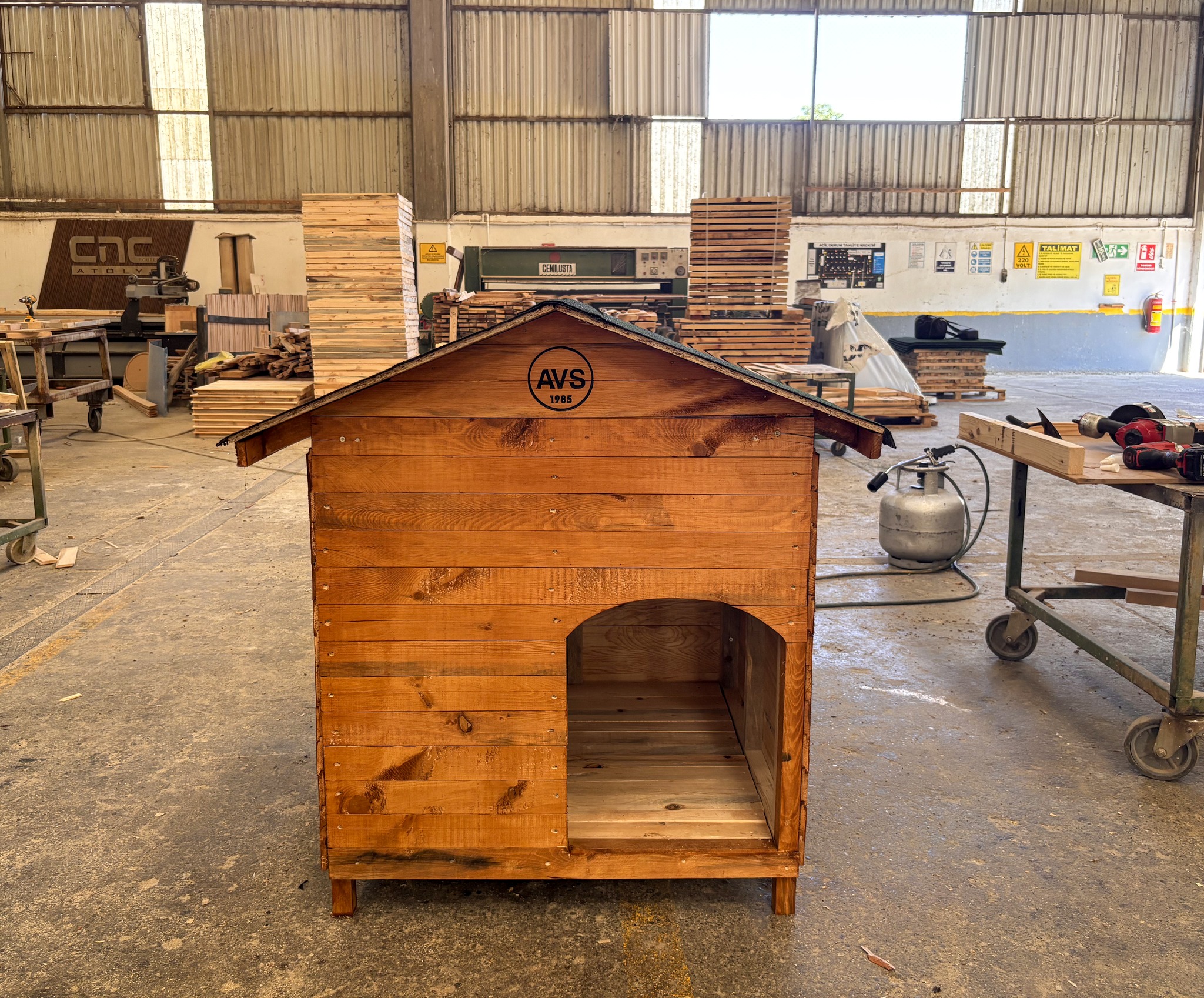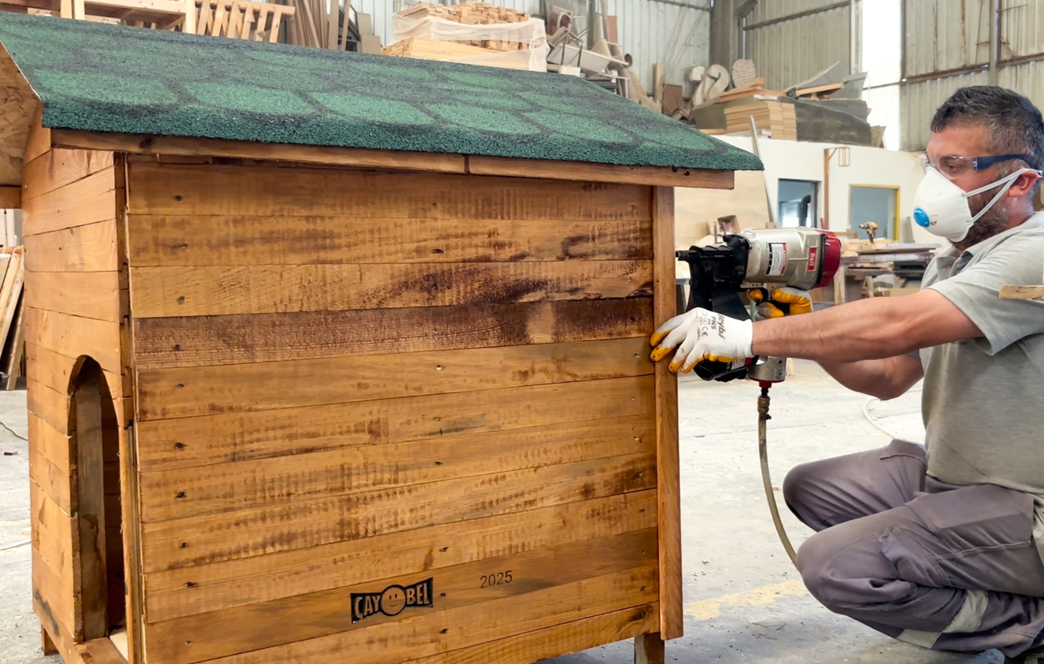 Çaycuma’nın üretim üssü haline gelen ÇAYBEL, tamamladığı birçok projenin yanı sıra, şimdi de seri halde ahşap köpek kulübesi üretiyor.