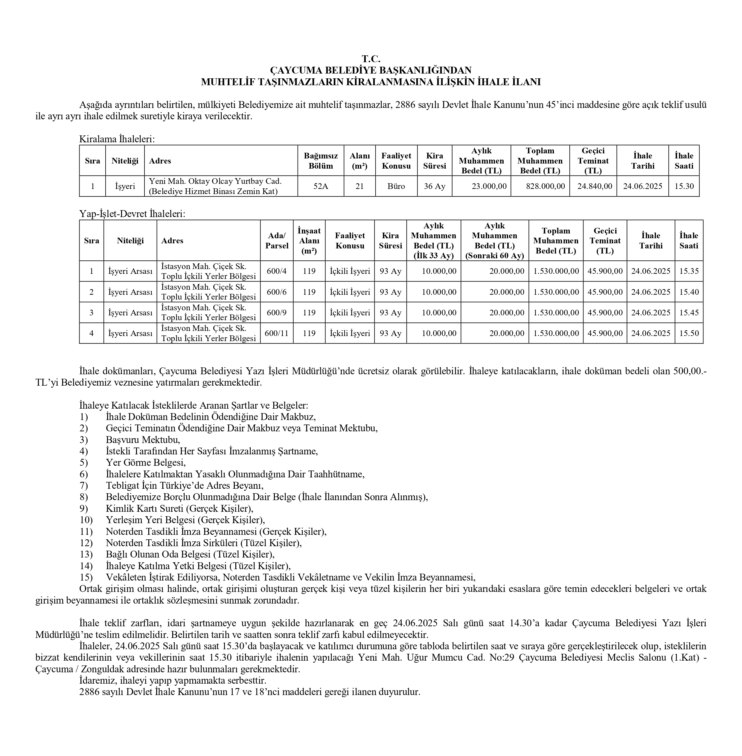 ÇAYCUMA BELEDİYE BAŞKANLIĞI’NDAN