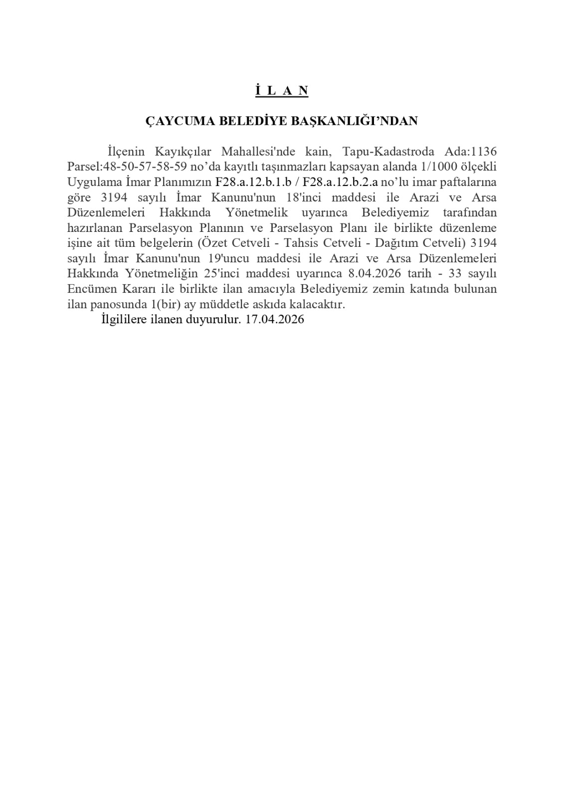 ÇAYCUMA BELEDİYESİ BAŞKANLIĞI’NDAN