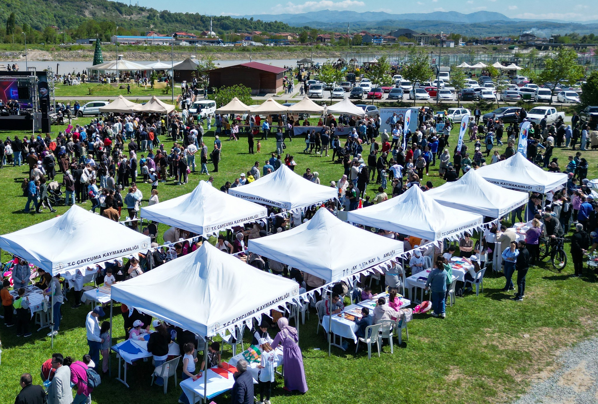 Binlerce kişi, etkinlik alanına kurulan yöresel yemek atölyesinde üretilen yemekleri tadarken, bazı vatandaşlar, yemeklerin yapımı ve kullanılan malzemeler hakkında, atölyeyi düzenleyen Çaycuma Belediyesi Meclis Üyesi Ferhan Nur’dan bilgi de aldı. Vatandaşlar ikram edilen zılbıt, mancar yemeği, malay, mancar dolması, turşu, lokma, gözleme, mısır ekmeği, cevizli şerbetli börek ve kabaklı börek gibi yöresel lezzetleri afiyetle tüketirken Karaelmas Abhaz Derneği, tüm vatandaşlara meşhur Abhaz böreği (pişi) dağıttı.