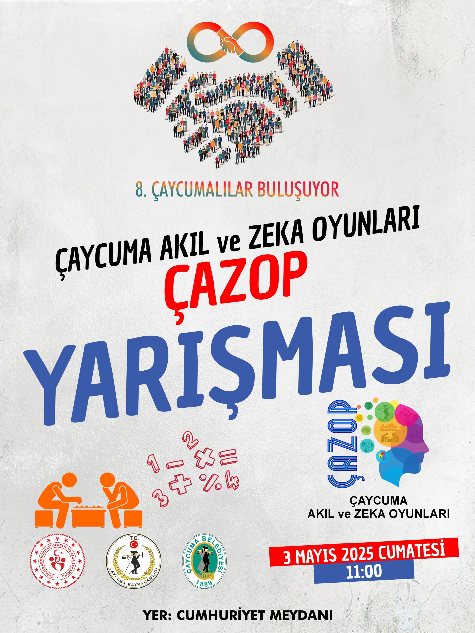 Çaycuma Belediyesinin Çaycuma Kaymakamlığı ile işbirliği içinde yapacağı 8. Çaycumalılar Buluşuyor etkinlikleri içinde çok sayıdaki spor dalında yarışma yapılacak. 29 Nisan’da Çaycuma Kapalı Spor Salonu’nda masa tenisi turnuvası ile başlayacak müsabakalar satranç, yüzme, futbol, voleybol, bisiklet, geleneksel sporlar, yöresel oyunlar gibi dallarda devam edecek.
