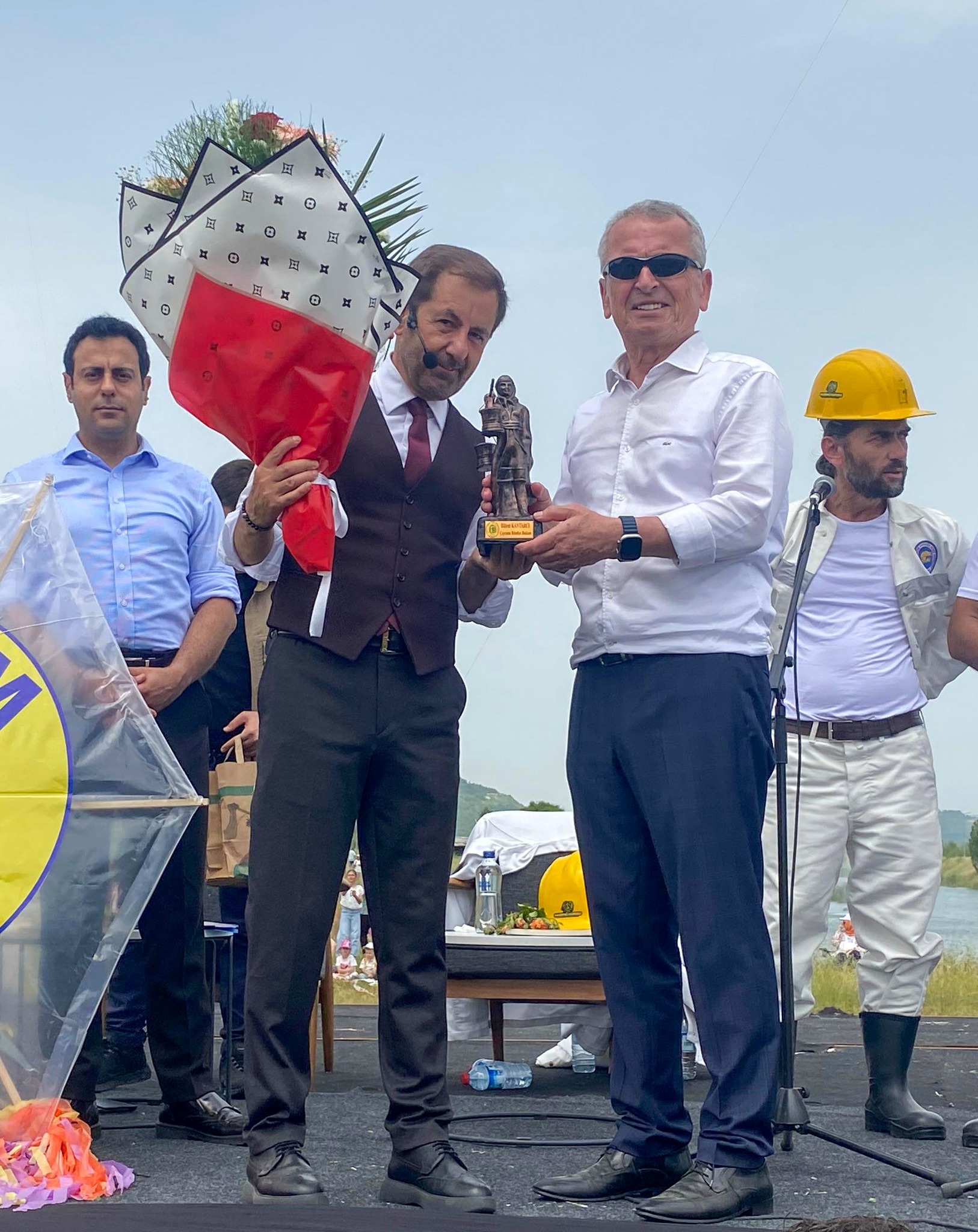 Çaycuma Belediye Başkanı Bülent Kantarcı, Baran Bozuoğlu ile birlikte Filyos Vadisi’nin korunmasının dünya için önemine değinip etrafındaki yanlış kullanımlara ısrarla dikkat çektiği programın sonunda, Serhan Asker’e çiçek sundu. Çaycuma’nın tanıtımı için çok değerli bulduğu programa emeği geçen herkese teşekkür de eden Kantarcı, Asker ve Bozuoğlu’na yoğurt taşıyan kadın heykeli de armağan etti.