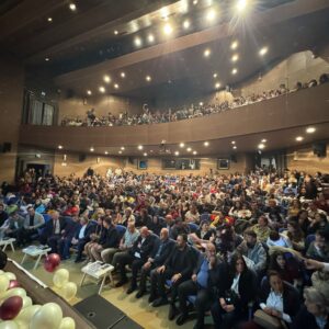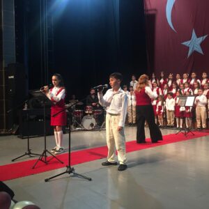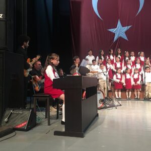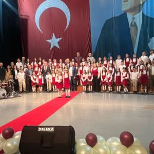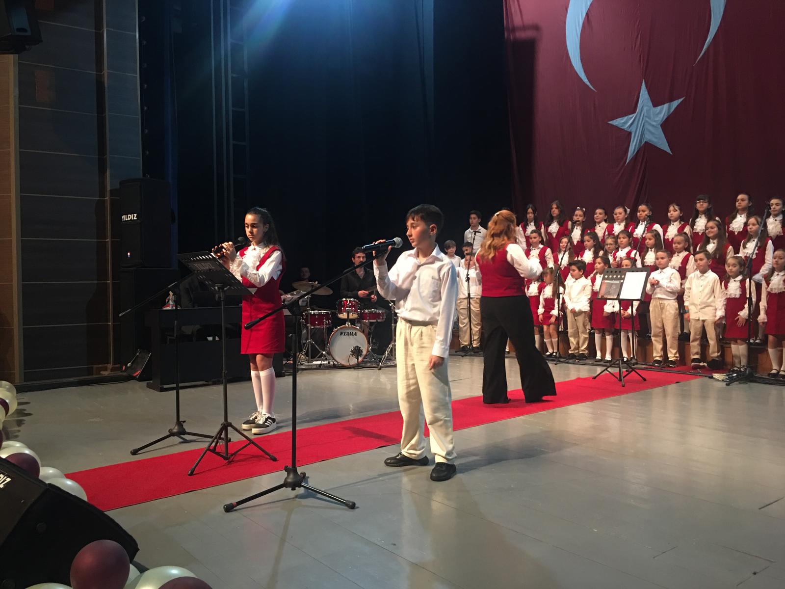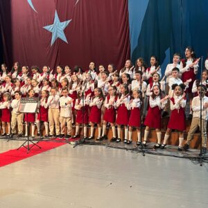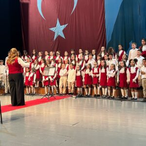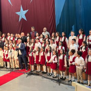 Belediyemizin Şef Esra Torlakçı yönetimindeki Çocuk Korosu, Çaycumalılara muhteşem bir gece yaşattı. Çaycuma Kültür ve Sanat Merkezi’nde yapılan 23 Nisan Özel Konseri’nde, 61 çocuktan oluşan koro, izleyenler tarafından ayakta alkışlandı. Kaymakamımız Adem Kaya, Belediye Başkanımız Bülent Kantarcı, İlçe Milli Eğitim Müdürü Ayhan Alagöz, bazı meclis üyelerimiz ve daire amirlerimizin yanı sıra çok sayıda vatandaşın da izlediği konserde, çocuklar, birbirinden güzel 24 eser seslendirdi. Konser sonunda Kaymakam Adem Kaya ile birlikte Şef Esra Torlakçı’ya çiçek sunan Belediye Başkanımız Bülent Kantarcı’nın isteği üzerine, final şarkısı olan “Sev kardeşim”, bütün salon tarafından, bir kez daha söylendi. 23 Nisan Özel Konseri, büyük mutluluk yaşayan çocuklarla ailelerinin, diğer katılımcılarla bol bol hatıra fotoğrafı çektirmesiyle sona erdi.