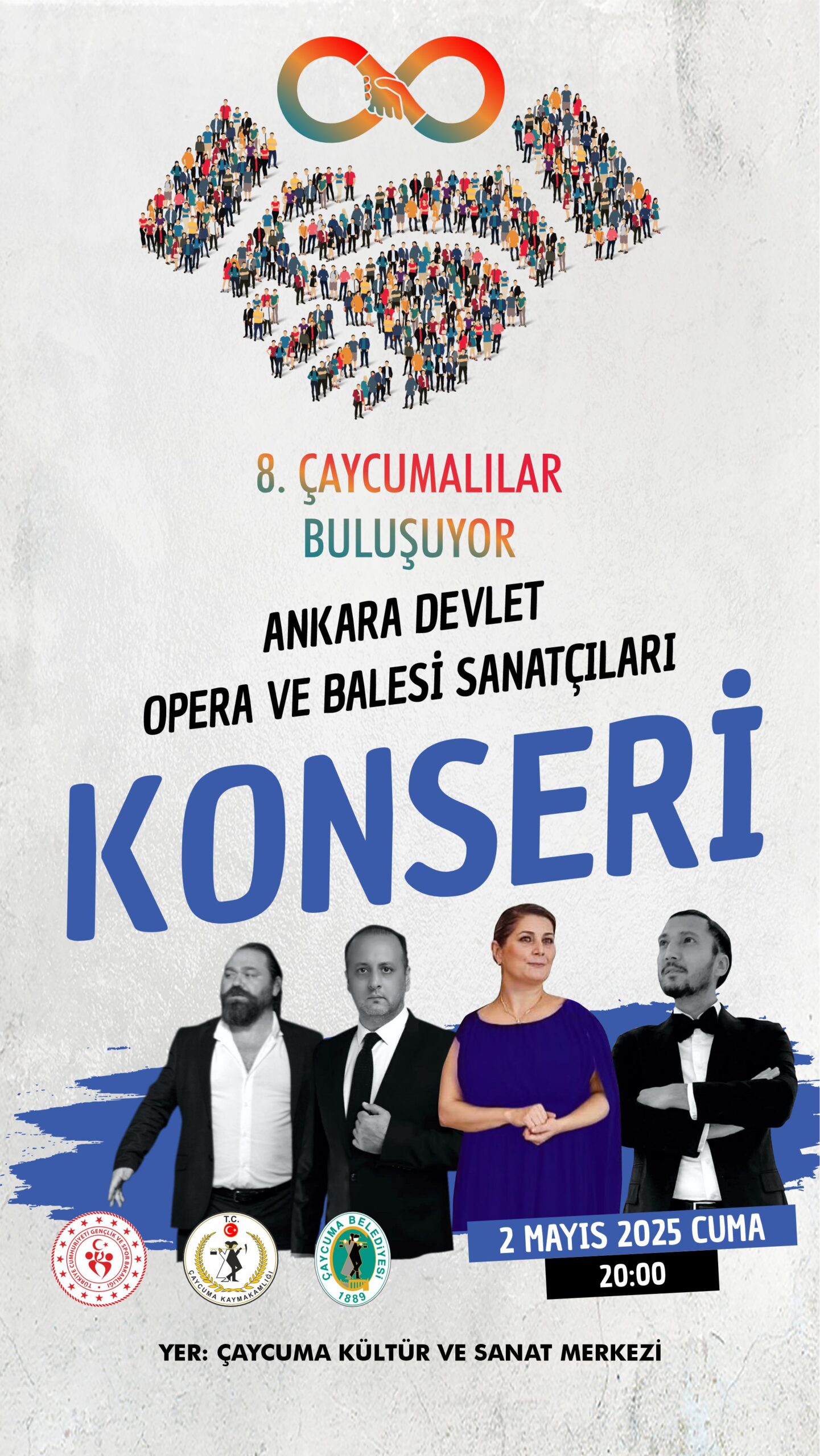 Büyük buluşmanın ilk gününün son etkinliğinde Ankara Devlet Opera ve Sanatçıları sahneye çıkacak. Çaycuma Kültür ve Sanat Merkezi’nde yapılacak konser saat 20.00’de başlayacak. Her yıl gelerek verdikleri konserler geleneksel hale gelen sanatçılar, olağanüstü sesleriyle, yine birbirinden güzel eserler seslendirecek.