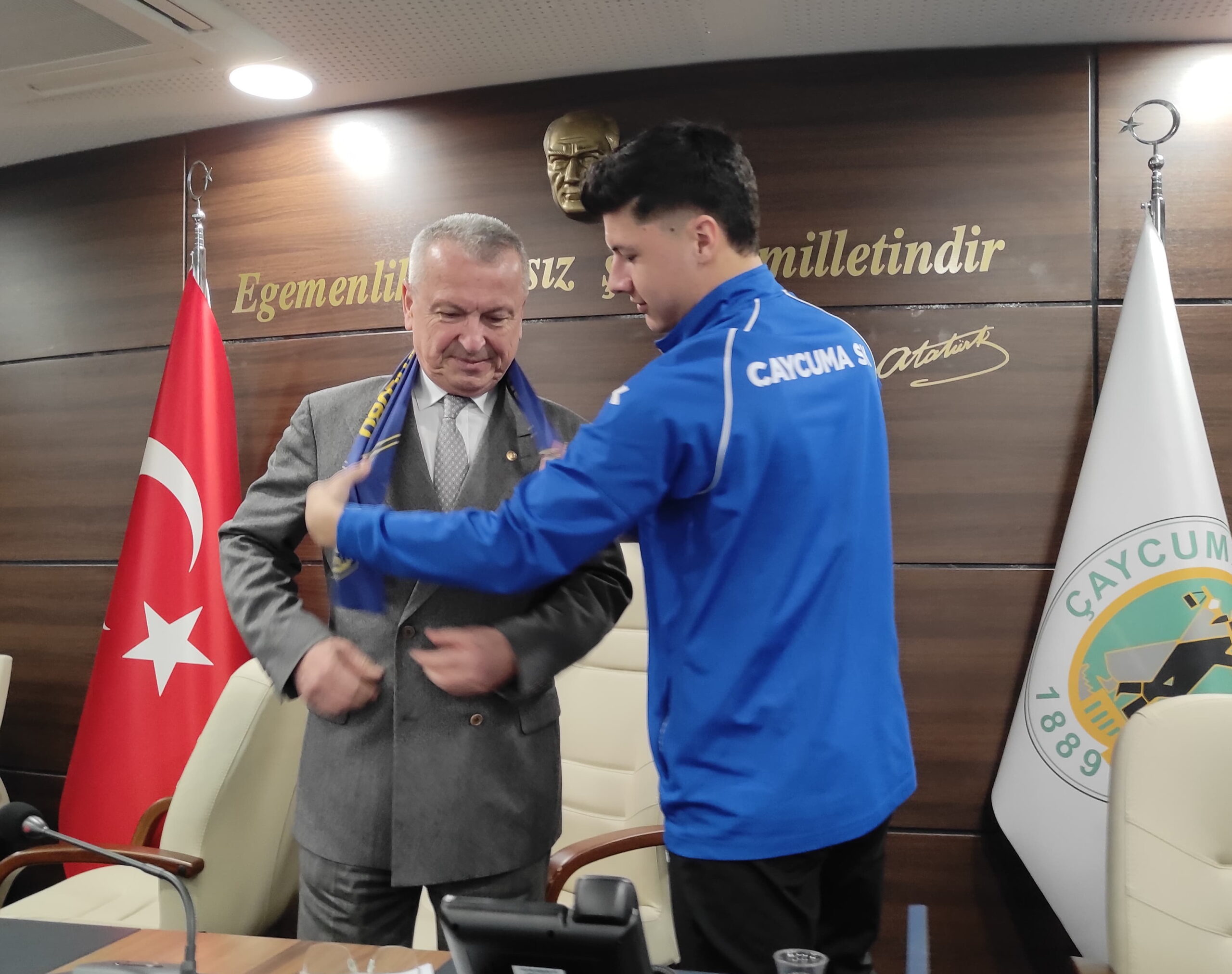 Bir üst lige çıkmak için mücadele eden Çaycumaspor futbolcuları, kendilerinden maddi manevi desteğini esirgemeyen Çaycuma Belediye Başkanı Bülent Kantarcı’yı ziyaret ederek teşekkür etti