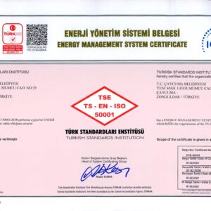 Çaycuma Belediyesi, TSE’den aldığı, ISO 9001 Kalite Yönetim Sistemi, ISO 10002 Müşteri Memnuniyeti Yönetim Sitemi belgesinin ardından, gönderine ISO 50001 Enerji Yönetim Sistemi kalite bayrağı çekme hakkı da kazandı