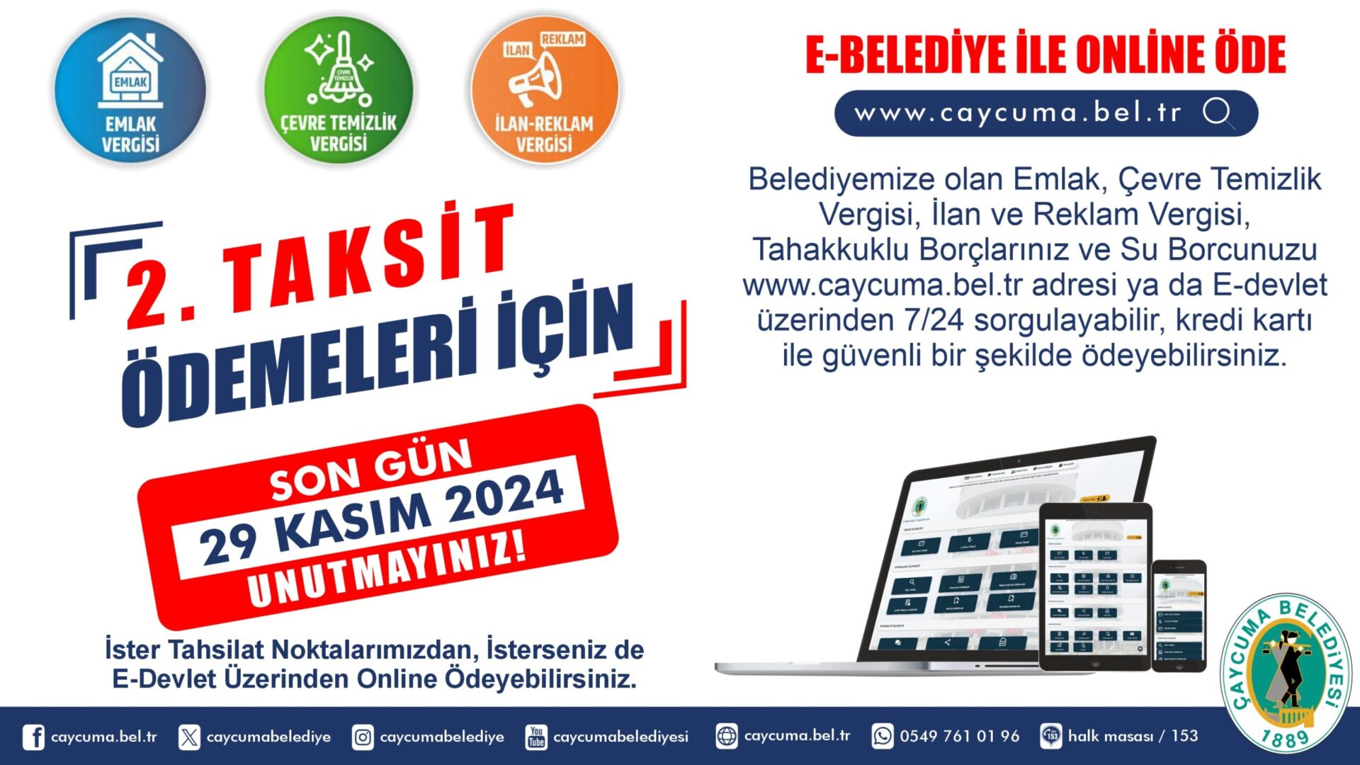 EMLAK, ÇEVRE TEMİZLİK VE İLAN-REKLAM VERGİSİ 2. TAKSİT ÖDEMESİ