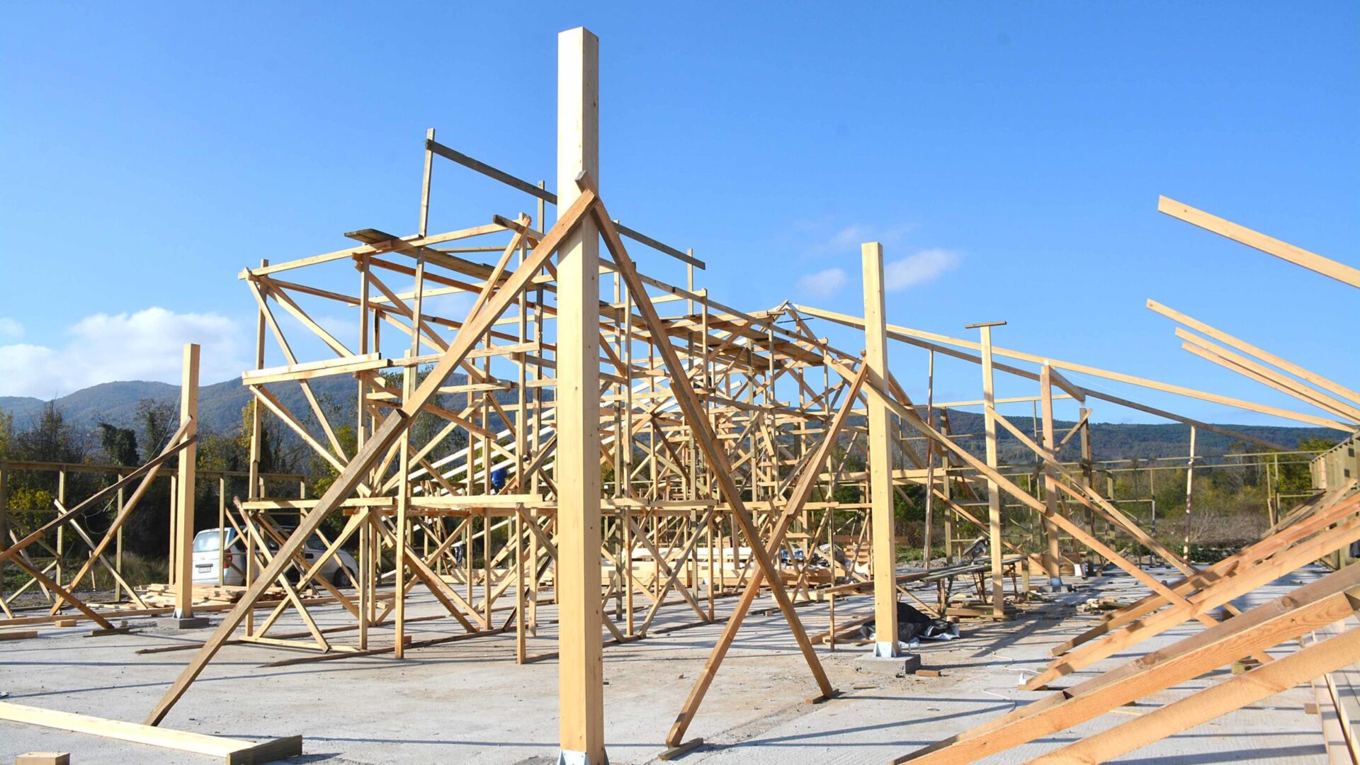 Çaycuma’nın en prestijli projelerinden biri olan ahşap caminin karkas montajı devam ediyor