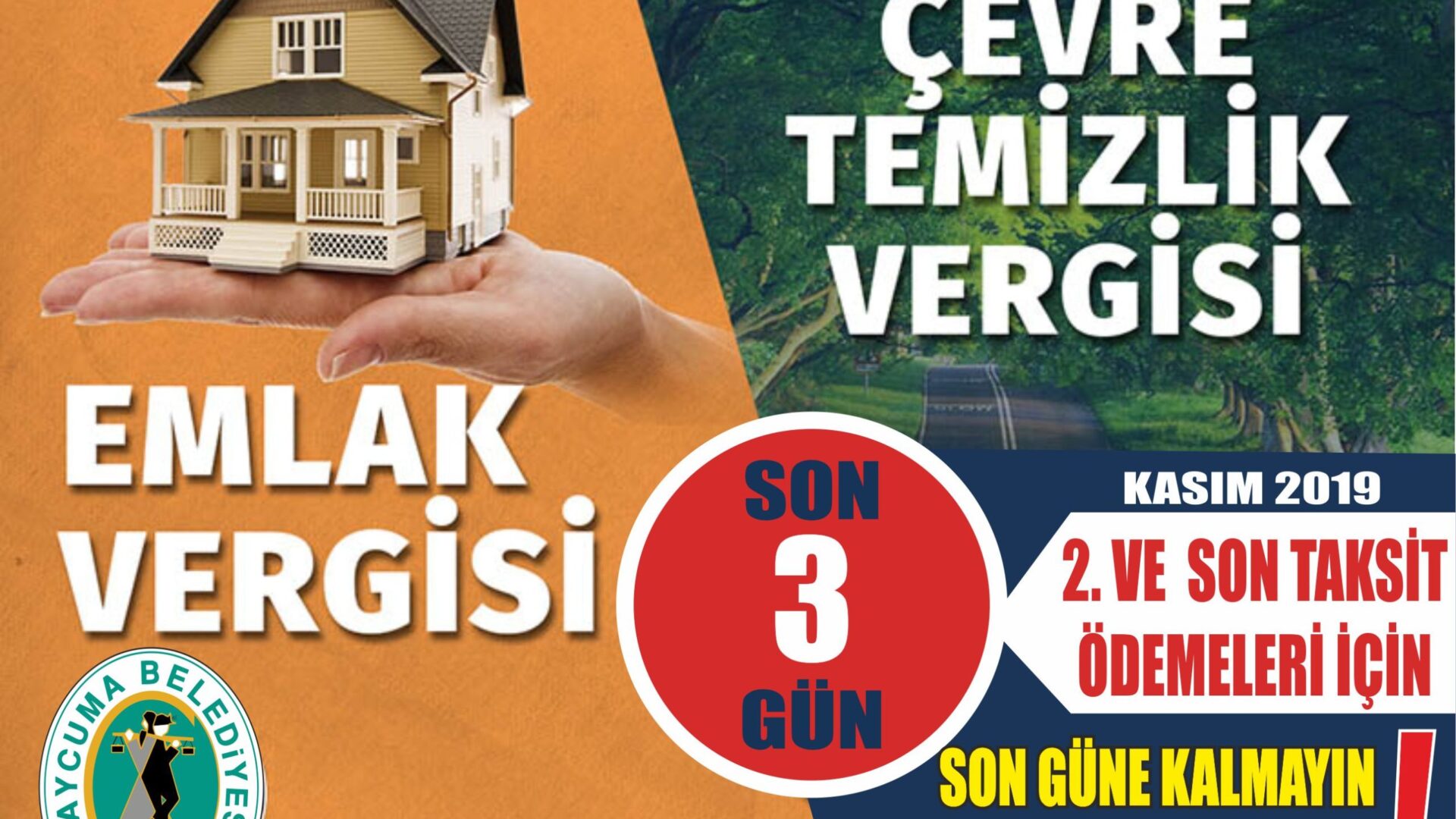 EMLAK ve ÇEVRE TEMİZLİK VERGİLERİNİN 2.VE SON TAKSİT ÖDEMELERİ İÇİN SON GÜNE KALMAYIN
