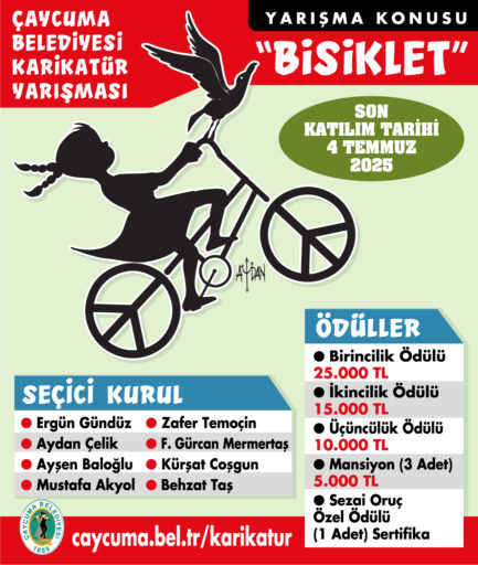 • Çaycuma Belediyesi Karikatür Yarışmalarına katılmak için aşağıdaki formu eksiksiz doldurup göndermeniz yeterlidir.