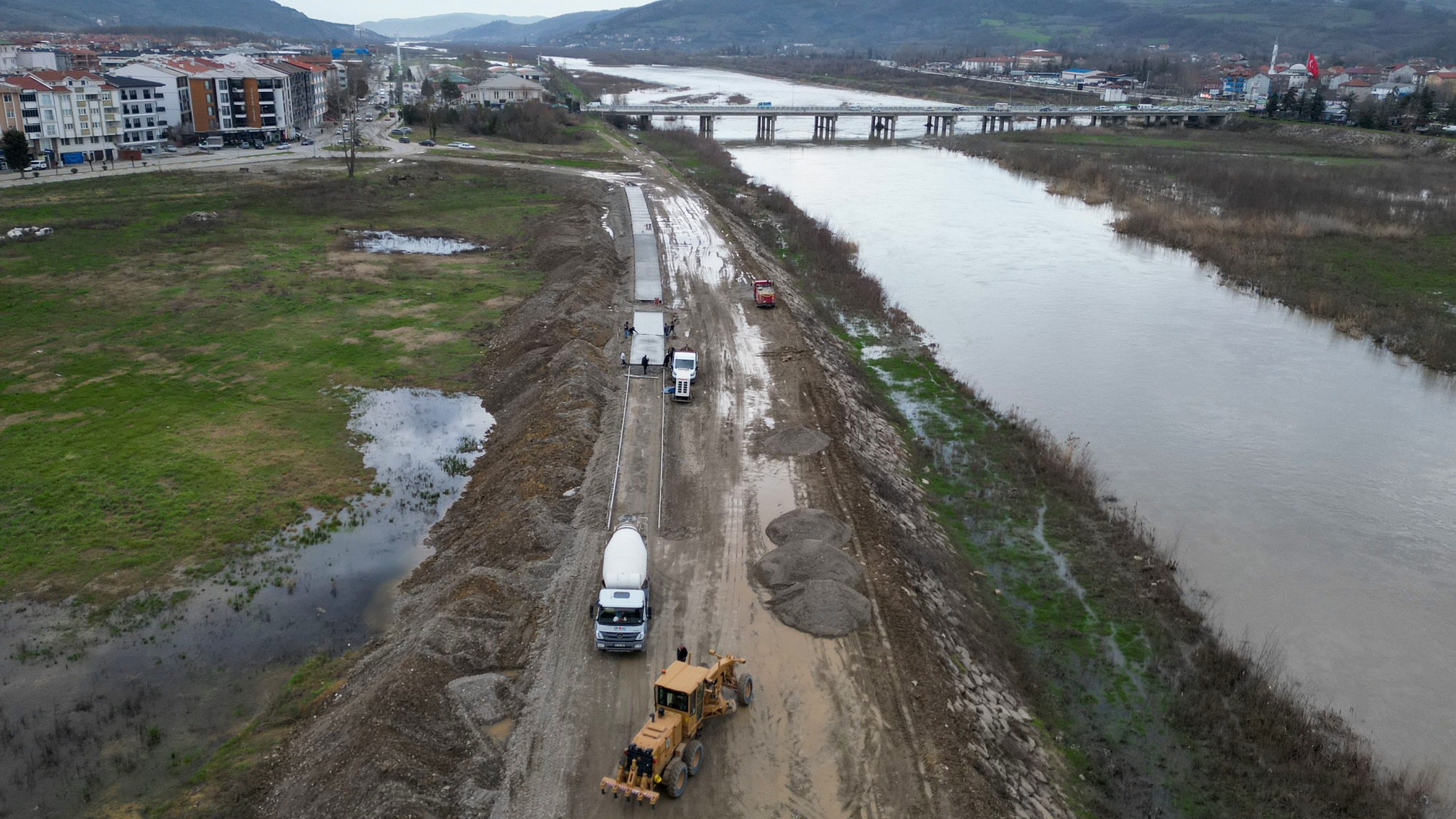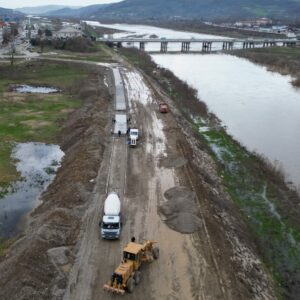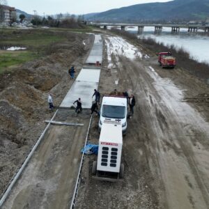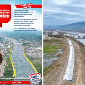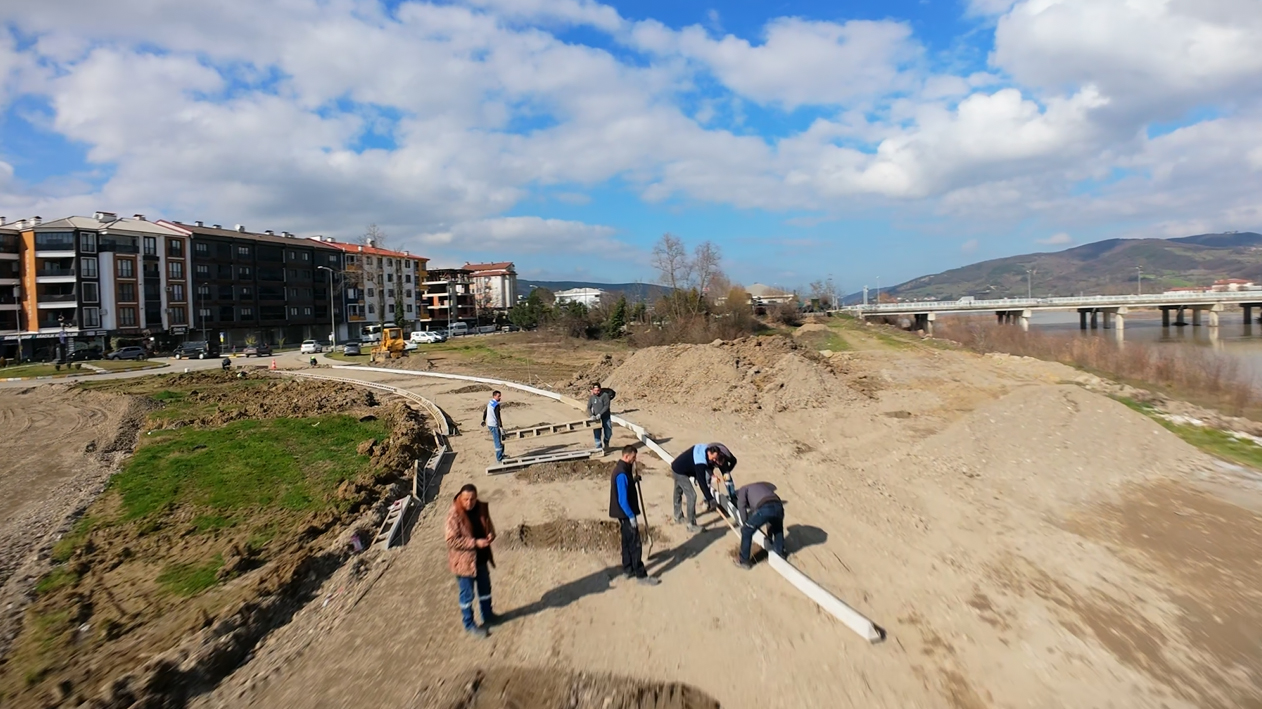 Belediye Başkanımız Bülent Kantarcı’nın vizyon projelerinden biri olan ve kenti ırmakla barıştırmayı hedefleyen 5 kilometrelik “Kordon Boyu Projesi”nde ilk adım atıldı. Fen İşleri Müdürlüğü ekipleri, Çaycuma Köprüsü ile Karamusa TOKİ kavşağı arasındaki 1.600 metrelik ilk etabın 400 metrelik yol betonunu dökerek projeye başladı.