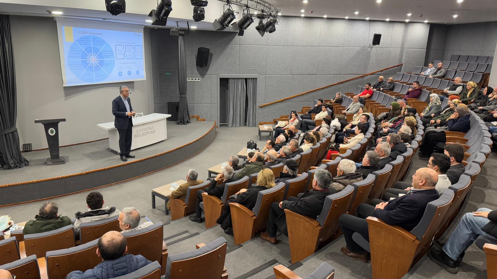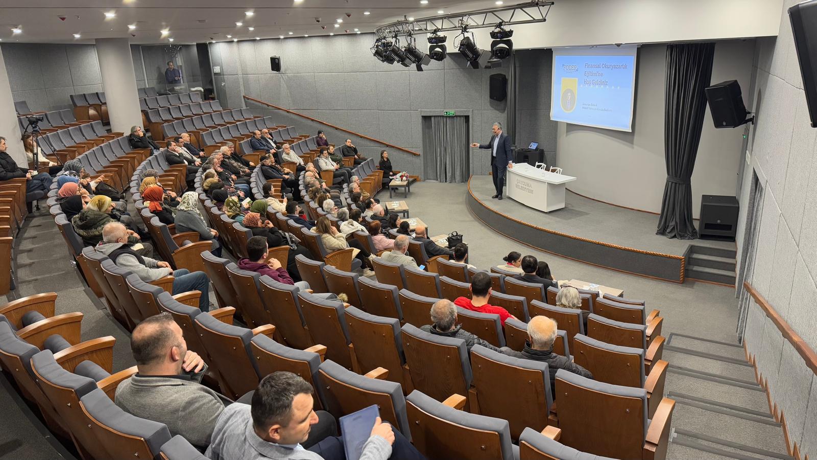 Konuşmasına başkanı olduğu FODER’in tanıtımını yaparak Başlayan Zekeriya Öztürk, 2002 yılında kurdukları derneğin birçok kesimle eğitim verdiğini söyledi. “Gönüllülük esasına göre çalışan derneğimizde hepimiz karşılıksız olarak görev yapıyoruz, hiçbir şekilde ücret almıyoruz. Dünyada ve ülkemizde önemli bulduğumuz finansal okuryazarlığı anlatmak için üniversitelere gidiyoruz, çiftçilere ulaşıyoruz. Çeşitli projelerle ilgilisine ulaşmaya çalışıyoruz. Çocuklara finansal okuryazarlık öğretmeye çalışıyoruz. Onlara pedagoglardan da destek alarak ‘para biriktirme’, ‘paranın zaman değeri’ gibi konuları anlatmaya çalışıyoruz. Ev kadınlarına yönelik çalışmalar yürütüyoruz. Finansal okuryazarlık aslında çok üst düzey bir şey değil, parayla bir şekilde ilişkisi olan herkes aynı zamanda bir finansal okuryazar. ‘Para harcamayı biliyor musunuz, kaynaklarınızı doğru kullanacak kararları verebiliyor musunuz, para biriktiriyor musunuz’ gibi sorulara cevap veriyorsanız finansal okuryazarsınız. Derneğimizin adında ‘erişilebilirlik’ de var. Finansal okuryazar olmak yetmiyor, bir de finans kaynaklarına erişebiliyor musunuz, bu da önemli.” dedi.