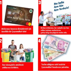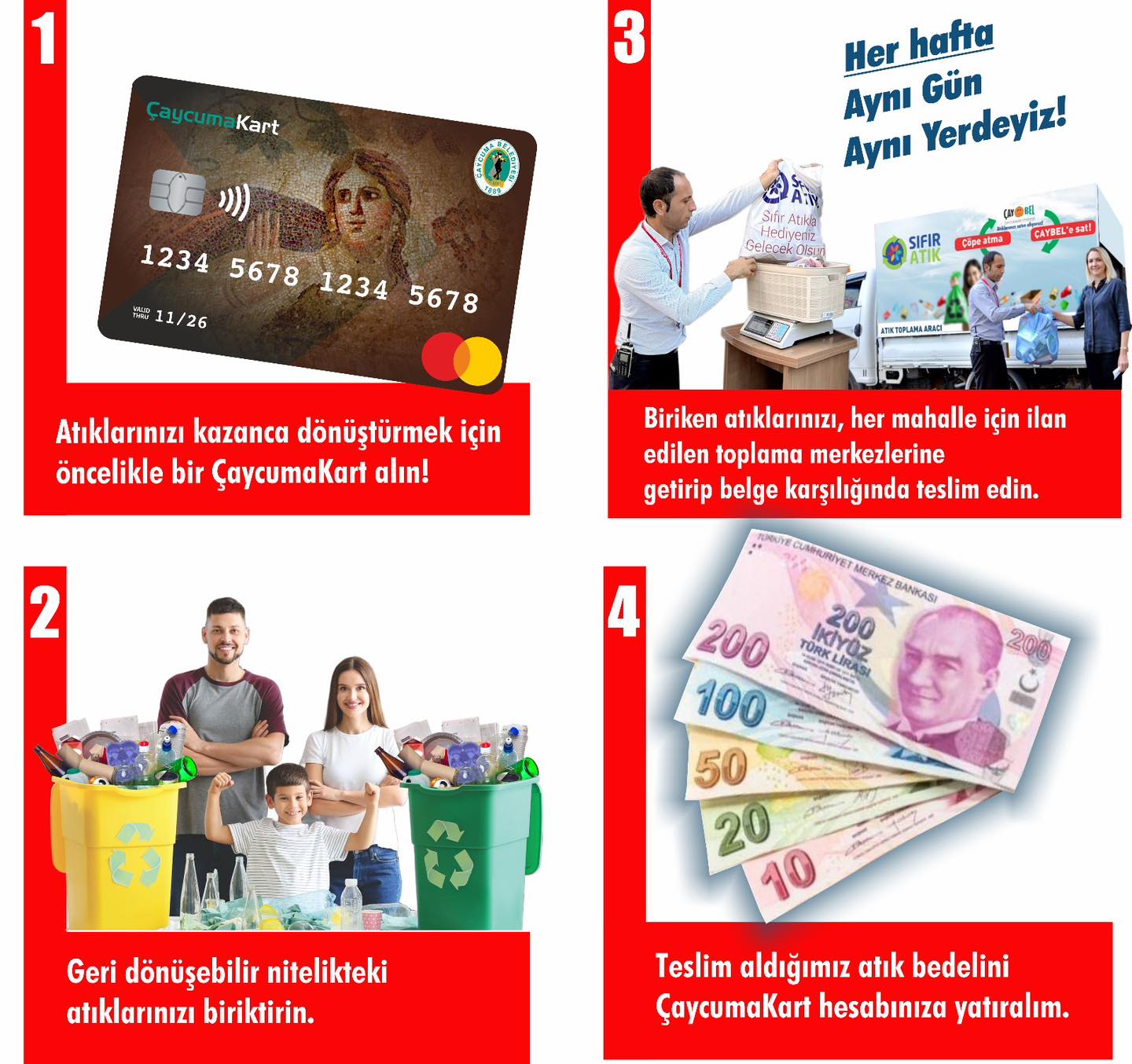 Biriktirilen atıkları kazanca dönüştürmek için ÇaycumaKart sahibi olmanın yeterli olacağı kampanyada geri dönüşebilir atıklar, 17 Mart’tan itibaren, her mahallede alım gün ve saatleri ilan edilen toplama noktasına getirilecek. Burada tartılan atıklar, görevlilerce teslim alınacak.